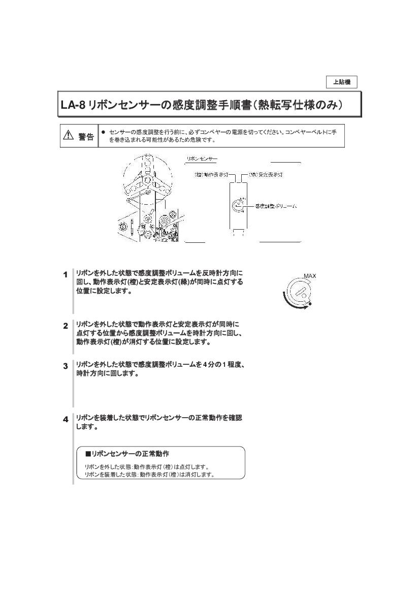vol.40 LA-8 上貼リボンセンサ―の感度調整手順書(熱転写仕様のみ)
