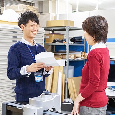 僕は大学の時に、美術系の大学に行ってましたが、デザインについての勉強は全然しておらず、どういうデザインをすれば気に入ってもらえるかわかりませんでした。そのため、たくさんダメ出しされたり、一からやり直しになることも多かったです。そういうことが続くと、なんのためにデザインしているのか、自分にはこの仕事が向いていないのではないかなど、マイナスなことを考えることが増えていました。でも、このままじゃ何も変わらない。自分なりに今できることをするしかないと気持ちを切り替え、世の中にどのようなデザインがあるのか、どういう表現の仕方をしているのかなど、とことん調べました。先輩や上司にデザインのアドバイスを貰いながらデザインの引き出しを増やし、商品のアピールポイントに着目することで、次第にお客さんにも喜んでもらえることが多くなりました。