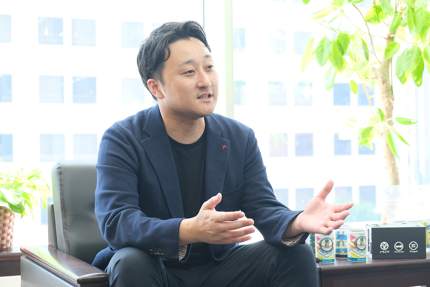 当社のICHI-GO-CAN®︎シリーズでは、多くの商品にポップなデザインを採用しています。これまでの日本酒売り場になかったビジュアルは、通りがかった人にある種の違和感を与え、足を止めるきっかけになるのです。トレンドを捉えたデザインは、日本酒に対する「古い」というイメージを変える力があります。当社商品は、要人や海外からのゲストをお迎えするレセプションでもご利用いただいていますが、スタイリッシュかつ日本らしい選択肢として喜んでもらえています。国内でも、若い人が一合缶を進んで手に取る、という新しいシーンを創り出すことができると信じています。